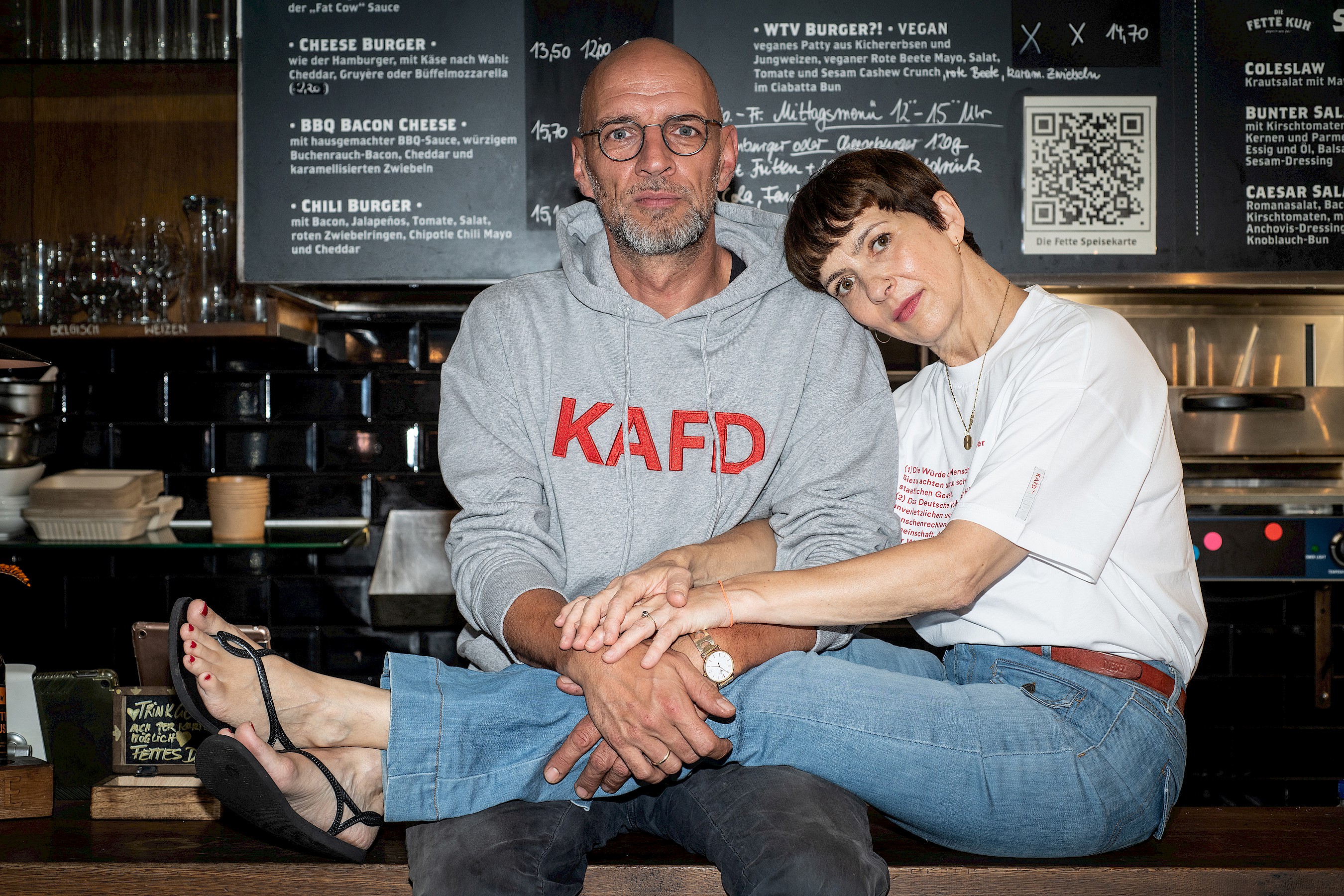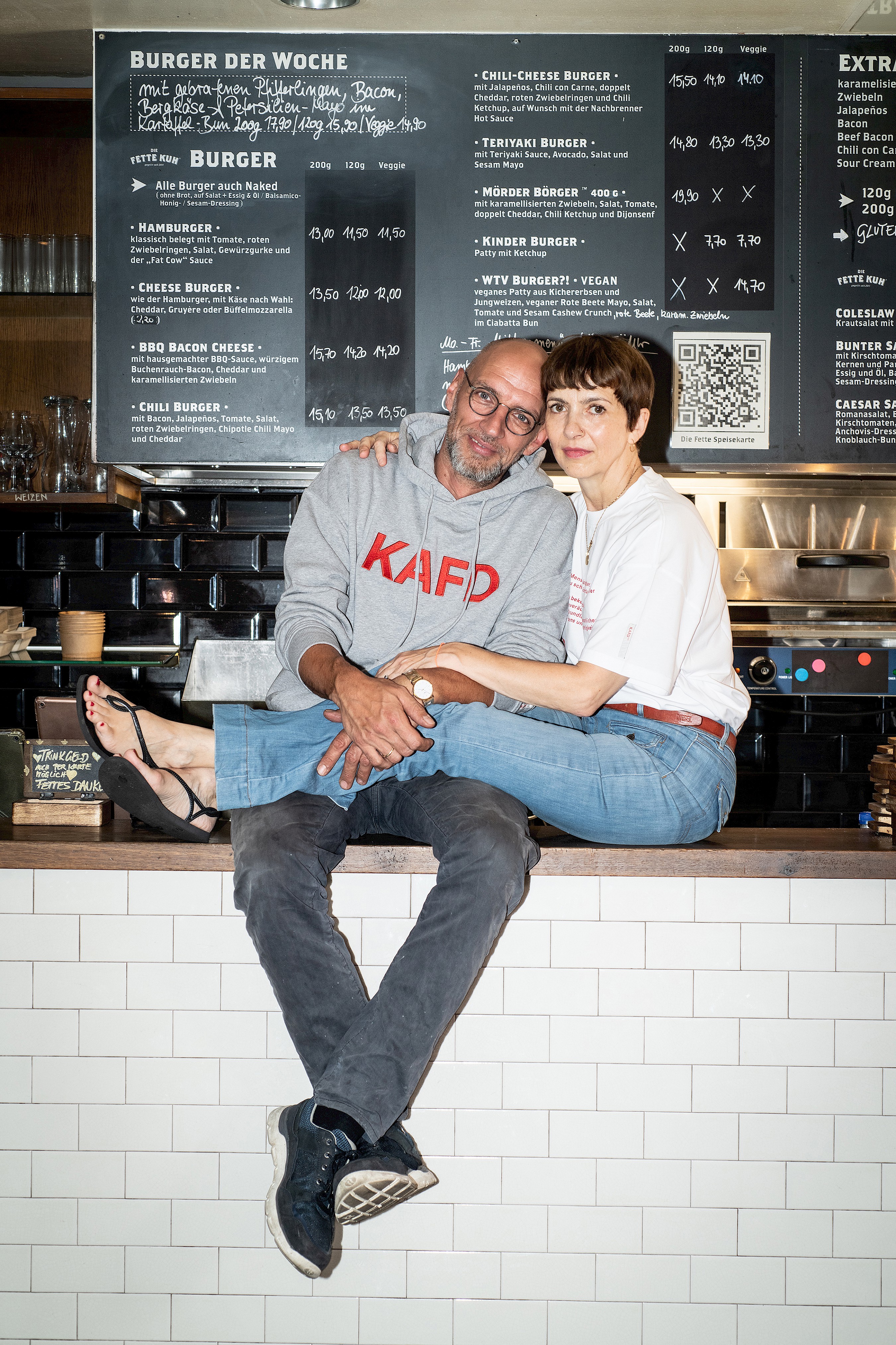 Entrepreneur and boss of Die Fette Kuh. Born in Bucharest, came to Germany as an asylum seeker at the age of 3 and landed here well. In her first life, an actress, and then 14 years ago opened Die Fette Kuh with Walter. Vegetarian for 30 years. No comment.