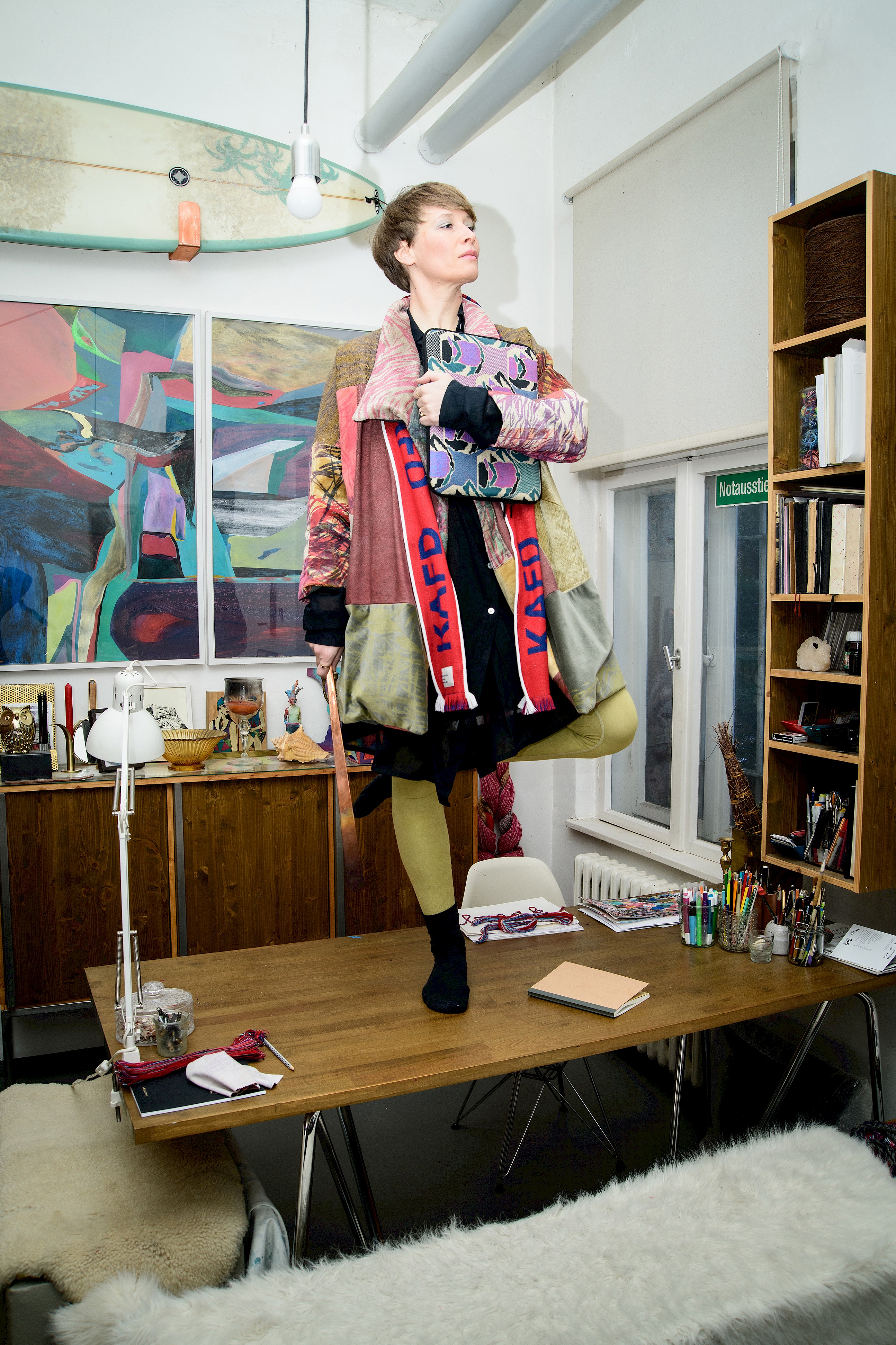 Her works are collected worldwide, and she has increasingly specialized in customized pieces, tailored to perfectly suit the needs and spaces of her collectors. Her practice extends beyond art into color concepts, furniture design, and spatial composition, creating a seamless blend of art and design. Her studio is currently based in the Naumannpark, Berlin, a vibrant creative hub where artists and craftsmen connect and inspire one another.