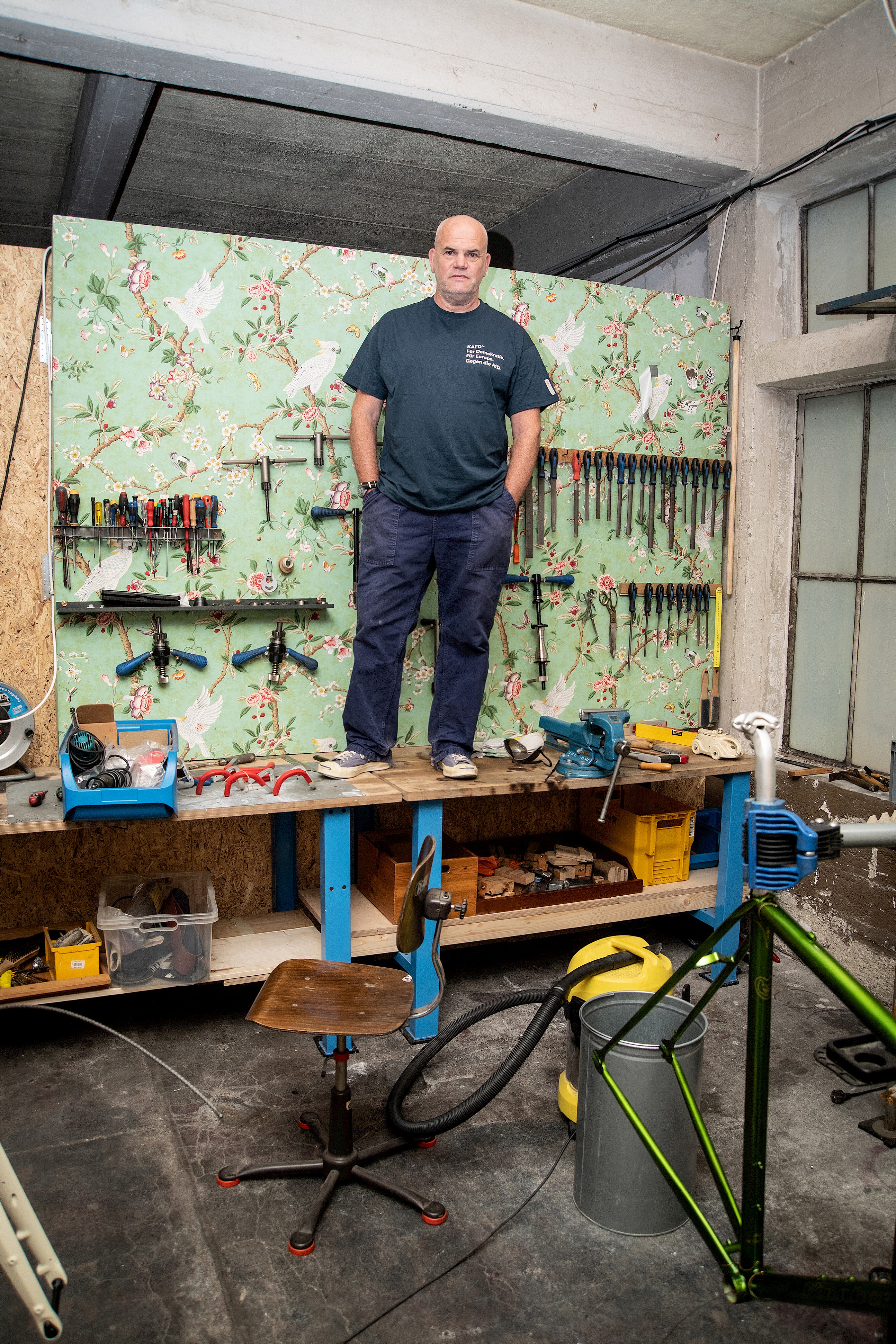 Im Jahr 2019 nahm James Buckley eine Auszeit von der Modebranche, um am Cambridge Institute for Sustainability Leadership (CISL) einen Studiengang in Sustainable Leadership zu absolvieren. Diese Phase – zusammen mit dem durch Covid verursachten globalen Stillstand – wurde zur einmaligen Gelegenheit, seine Aktivitäten als Rahmenbauer zu professionalisieren. Im Laufe der Jahre war James nämlich zum Meister seines Handwerks geworden und hatte sich eine kleine, aber bestens ausgestattete Werkstatt in Köln eingerichtet.
