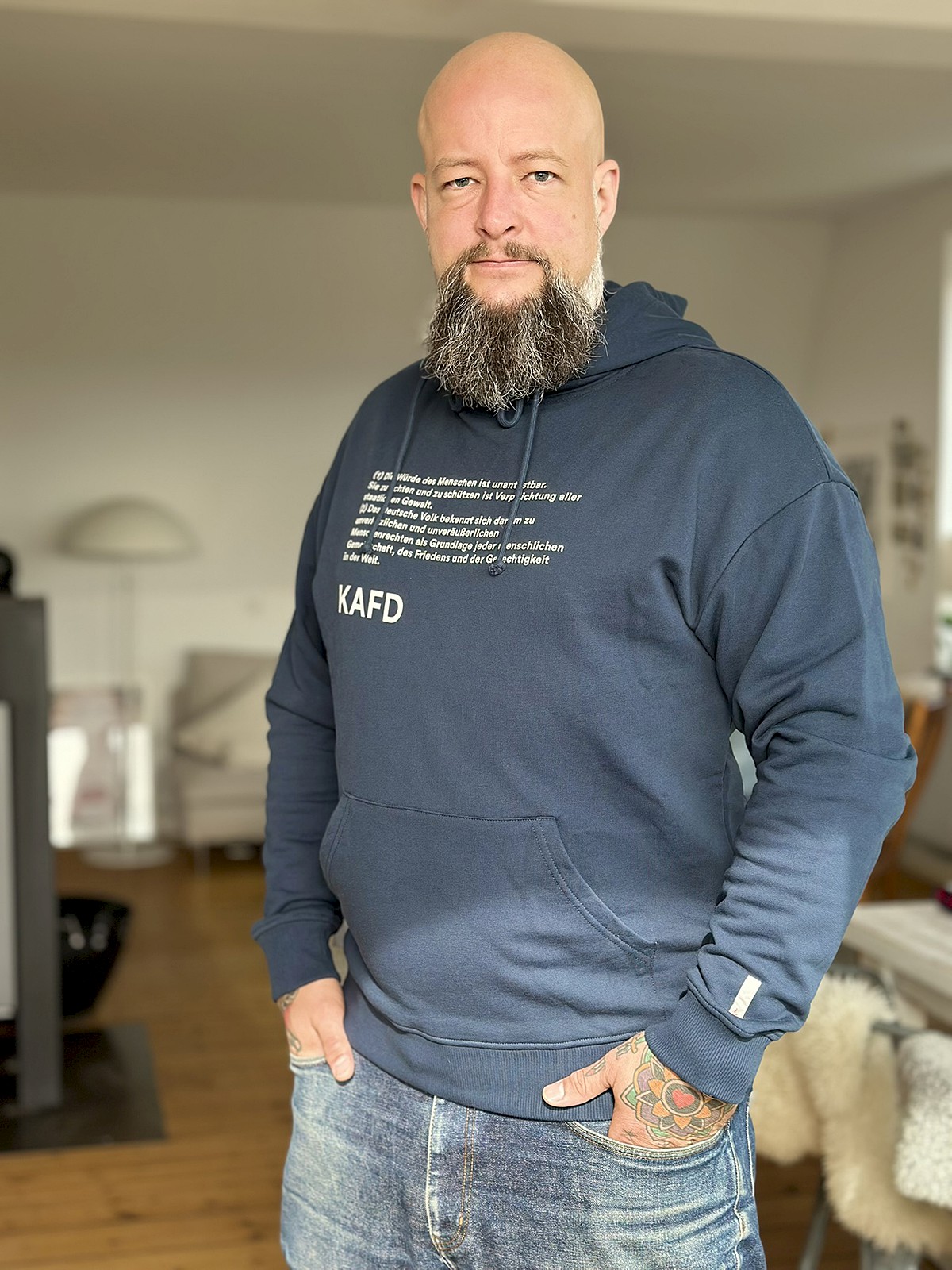 CHRISTOPH HENNIG, 49, Kreuzberger, früher Thaiboxer, Surfer, Skater und Snowboarder – jetzt Yogi und in der IT-Welt unterwegs. "Als Vater einer 9-jährigen Tochter kämpfe ich für Demokratie, Europa und gegen die AfD.", Berlin (Germany)
